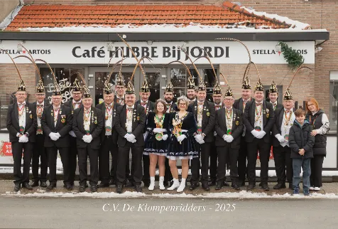Toen de leden van de carnavalsvereniging, tijdens de oprichting ervan, een gepaste naam aan het zoeken waren, was het de 1ste Prins Carnaval, Georges den 1ste die voorstelde om onze carnavalsvereniging “DE KLOMPENRIDDERS” te noemen.